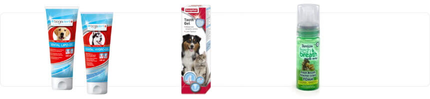 2. Encimski geli ali penaZa vse tiste lastnike in kosmatince, ki nad ščetkanjem niste navdušeni, obstajajo tudi druge možnost za vzdrževanje pasje ustne higiene. Pomagate si lahko s posebnimi izdelki, ki so namenjeni čiščenju zob brez ščetkanja. Z gelom ali peno, ki ju dnevno nežno vnesete v pasji gobček, poskrbite za kužkov svež dah in zdrave zobe.