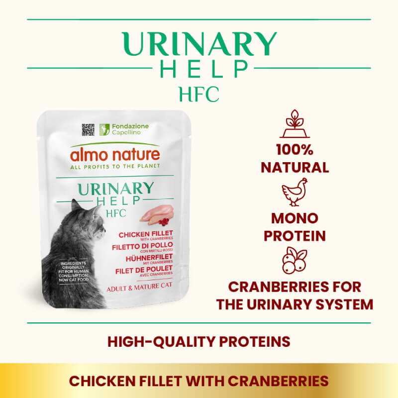 Naredite obroke vaše mačke nekaj posebnega z zelo kvalitetno dopolnilno mokro hrano Almo Nature HFC Urinary. Vsebuje okusna piščančja prsa ter bo vašo mačko navdušila s pravimi, celimi koščki mesa.
