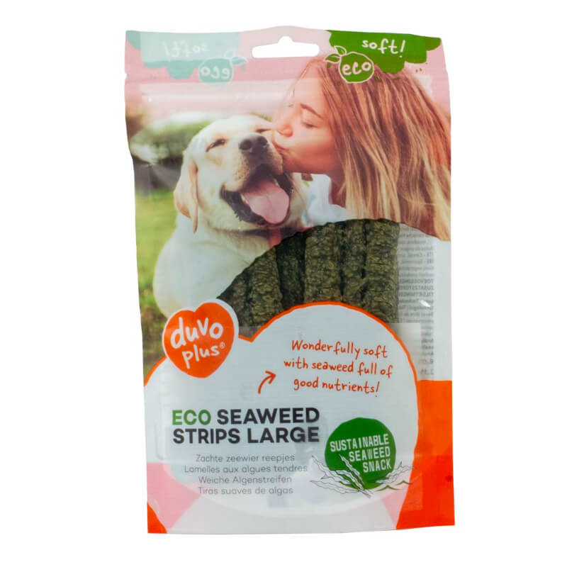 Dopolnilna hrana za psa je pripravljena v obliki trakov iz morskih alg, ki predstavljajo hitro rastočo in trajnostno surovino. Alge so bogat vir esencialnih hranil, kot so minerali, vitamini, omega-3 maščobne kisline in vlaknine. Žvečljivke tako ugodno vplivajo na zdravje prebave, sklepov, mišic in dlake. Z žvečenjem teh mehkih posladkov si pes tudi očisti zobovje.