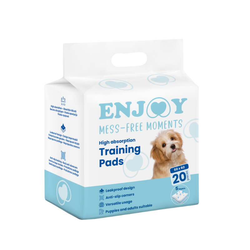 Vpojna podloga je sestavljena iz 5 vpojnih plasti, ki tekočino zelo dobro vpijajo. Dobra vpojnost izdelka poskrbi, da se kužkove tačke ne zmočijo, hkrati pa ne prepušča tekočine na talne površine. Podloga je opremljena s protizdrsnimi robovi, ki preprečujejo premikanje izdelka po tleh. Vpojno podlogo na začetku lahko namestite v mladičkovo ogradico ali boks, tako se bo kosmata kepica hitreje privadila na uporabo. Pri navajanju psička za opravljanje potrebe na vpojno podlogo potrebujete ogromno pozitivne spodbude za psička in tudi močno voljo. V primeru, da kosmatinčku uide in potrebe ne opravi na pleničko ga ne kaznujte.