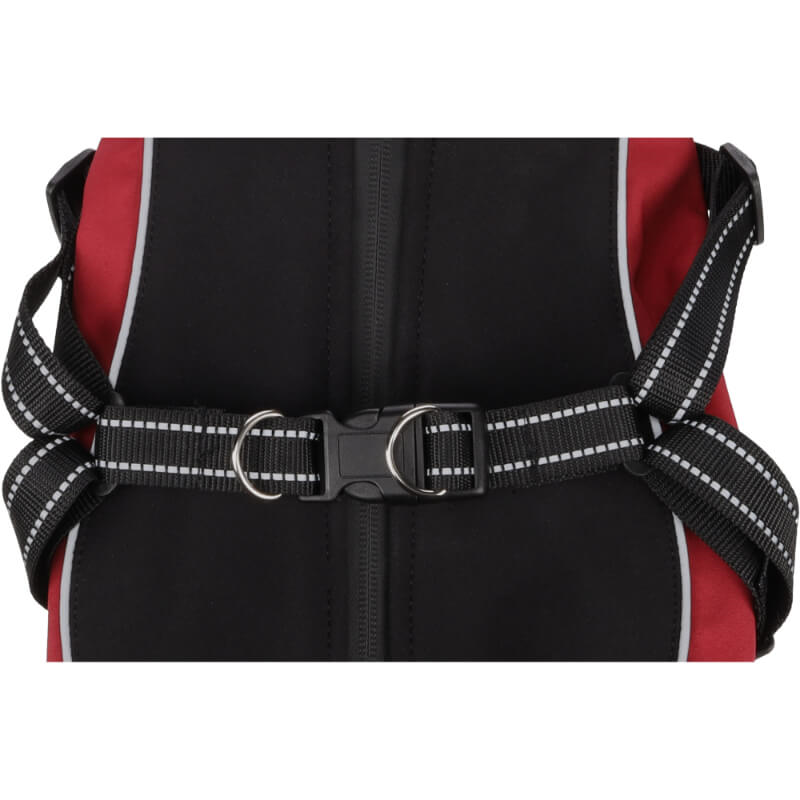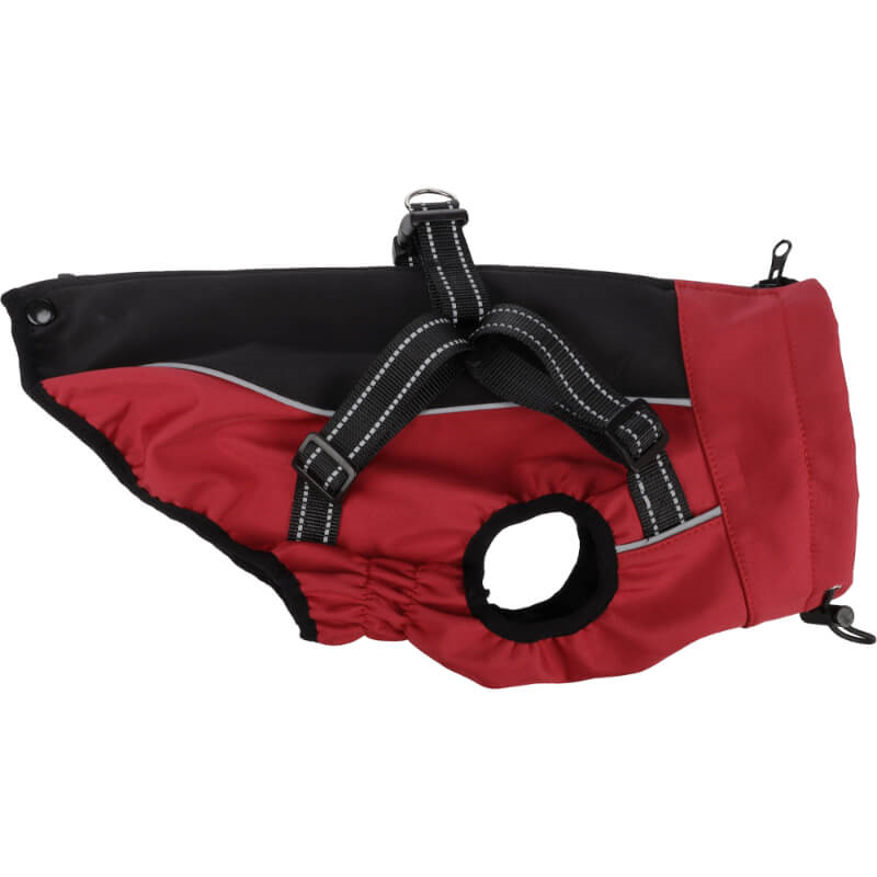 Plašček vašega psa ščiti pred mrazom ter vlago in je preprost za oblačenje. Izdelan je iz vodoodbojnega poliesterskega materiala, podložen pa z mehkim flisom. Plašček je zelo praktičen, saj je združen s pritrjeno oprsnico, okoli vratu pa ima še zaščitni ovratnik, ki se zapre z vrvico. Spodnji del bundice nudi zaščito dlake pred močenjem in sprijemanjem na trebuščku kosmatinca. Opremljen je tudi z odsevnimi elementi, ki bodo poskrbeli, da bo kužek na sprehodu varen. Plašček je primeren za občutljivo pranje na 30°C.