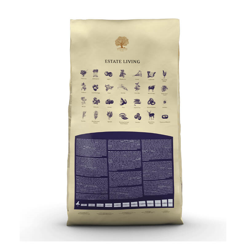 Nahranite svojega pasjega prijatelja s popolnim obrokom suhe hrane Essential Foods Estate Living ter mu omogočite kvaliteteno in dolgo življenje. Briketi so primerni za hranjenje odraslih psov vseh velikosti in pasem.