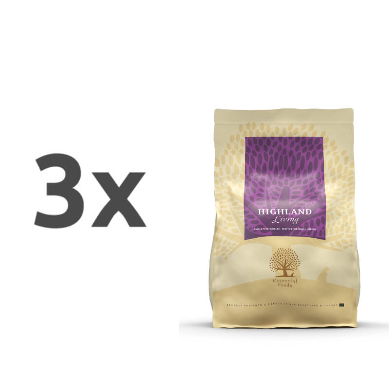 3 x 2,5 kg Essential Foods Dog Highland Adult - puran, losos in angus - mini ali large 3 x 2,5 kg