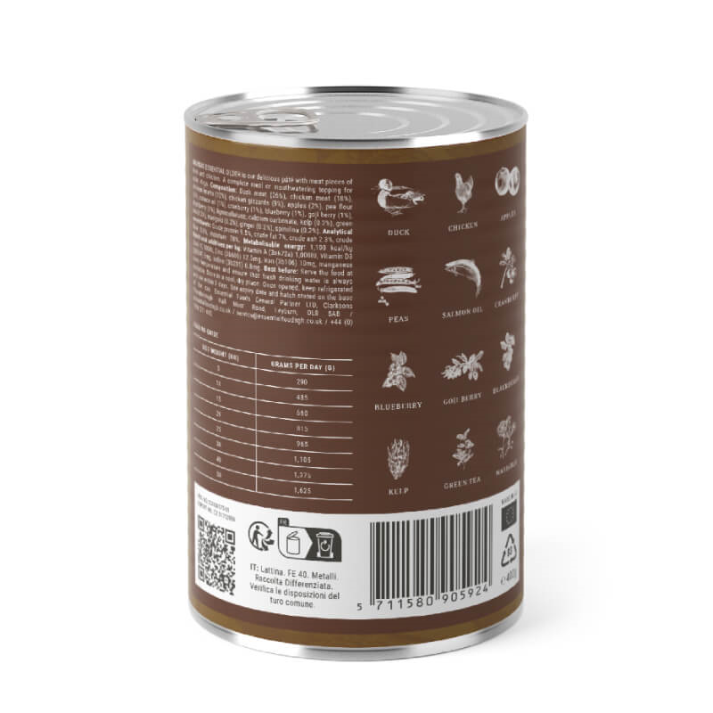 Essential Foods predstavlja popoln obrok za vašega družinskega člana. Obroki so sestavljeni tako, da pri ljubljenčku ohranjajo stabilno raven sladkorja v krvi in vsebujejo vse potrebne hranilne snovi za zdravje vašega kosmatega prijatelja. Recepture so pripravljene iz visokokakovostnih sestavin in brez žit. V ponudbi najdete neustavljivo okusno suho briketirano in konzervirano mokro hrano za pse in mačke ter priboljške za pse.