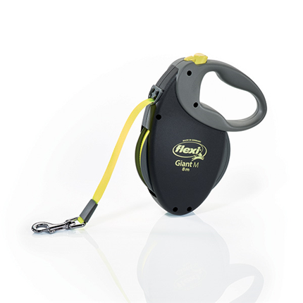 Zložljivi povodec Flexi Giant bo poskrbel za zabavne sprehode, saj psu omogoča svobodno raziskovanje okolice v premeru 8 metrov. Posebni navijalni sistem preprečuje zatikanje traku in vlečenje, saj skrbi, da je vrvica vedno napeta. Če želite psa ustaviti oz. ga upočasniti, preprosto s palcem pritisnite gumb za zaviranje in psa upočasnite.