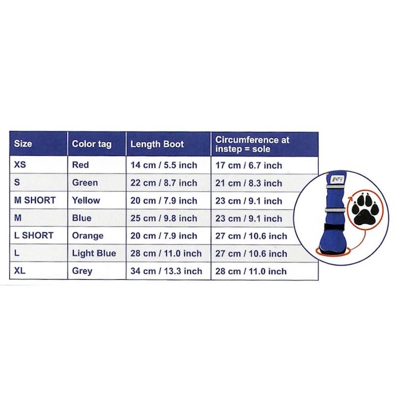Škorenj je izdelan iz kvalitetnega materiala z dvignjenim, prilagodljivim in gumijastim podplatom, ki nudi odlično zaščito tudi psom, ki tačke vlečejo za seboj.