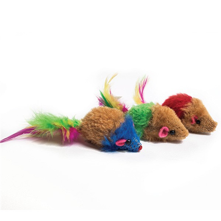Miš je narejena iz živobarvnega pliša, ima zvonček in perje ter prebudi vse mačje čute.