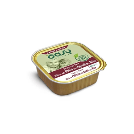Popolna mokra hrana Oasy Tasty Paté predstavlja samostojen obrok starejših mačk in vsebuje vse kar vaš mucek potrebuje. Vsebuje visoko vsebnost živalskih beljakovin, ki so lahko prebavljive. Hrana ne vsebuje umetnih barvil, arom ali konzervansov, je brez žit in glutena, gensko spremenjenih organizmov (GSO) ter soje. V hrani so samo skrbno izbrane kakovostne sestavine.