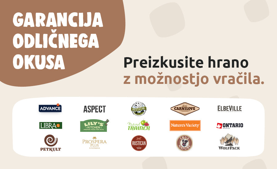 Garancija okusa ne velja za veterinarske diete in znamke Taste Of The Wild, Royal Canin, Barking Heads, AATU, Arden Grange, Fish4Dogs, Forza10.