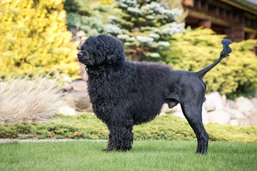 ‘lion cut’- sprednji del telesa do zadnjega rebra je poraščen z dolgo dlako, zabrit gobec in zadek, na koncu repa ima čop.