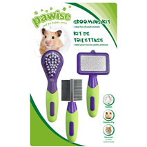 Prikupen set za grooming glodalcev, ki vsebuje krtače in glavnik. Primeren za nego hrčkov, morskih prašičkov in kuncev.