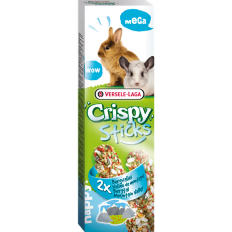 Posladkajte vašega ljubkega malega prijatelja s hrustljavimi krekerji Versele-Laga Crispy za kunce in činčile v obliki priročnih palčk. Z dodatkom priboljška ljubljenčku omogočite njegovo naravno vedenje in zaposlite delovni smrček ter mu popestrite okolje v kletki.